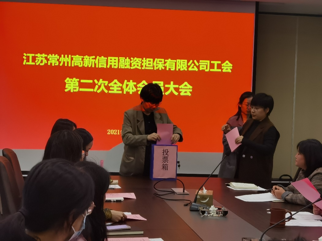 11月19日,常州高新擔保公司工會第二次全體會員大會順利召開,選舉產生第二屆工會委員會及工會主席。