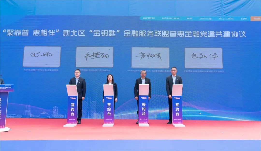 按照“共建促黨建、共建促了解、共建促合作、共建促發(fā)展”的目標,新北區(qū) “金鑰匙” 金融服務聯(lián)盟合力推出“聚靠普 惠相伴”普惠金融黨建共建項目,新北區(qū)經(jīng)發(fā)局第三黨支部、工商銀行新區(qū)支行黨總支、中國銀行新北支行黨總支、常州高新?lián)|h支部簽訂了黨建共建協(xié)議,以高質(zhì)量黨建引領普惠金融高質(zhì)量發(fā)展。