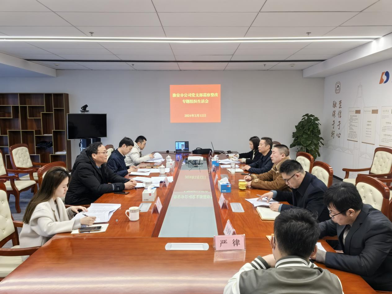 3月12日下午,按集團黨委巡察整改要求,淮安分公司黨支部召開巡察整改專題組織生活會,巡察組成員出席會議。