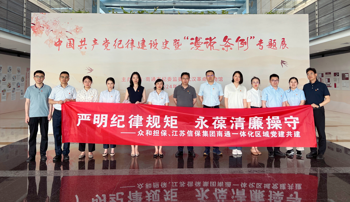 5月28日下午,南通地區(qū)黨支部與眾和擔(dān)保黨支部共赴市政中心參觀中國(guó)共產(chǎn)黨紀(jì)律建設(shè)史暨“漫說條例”專題展。