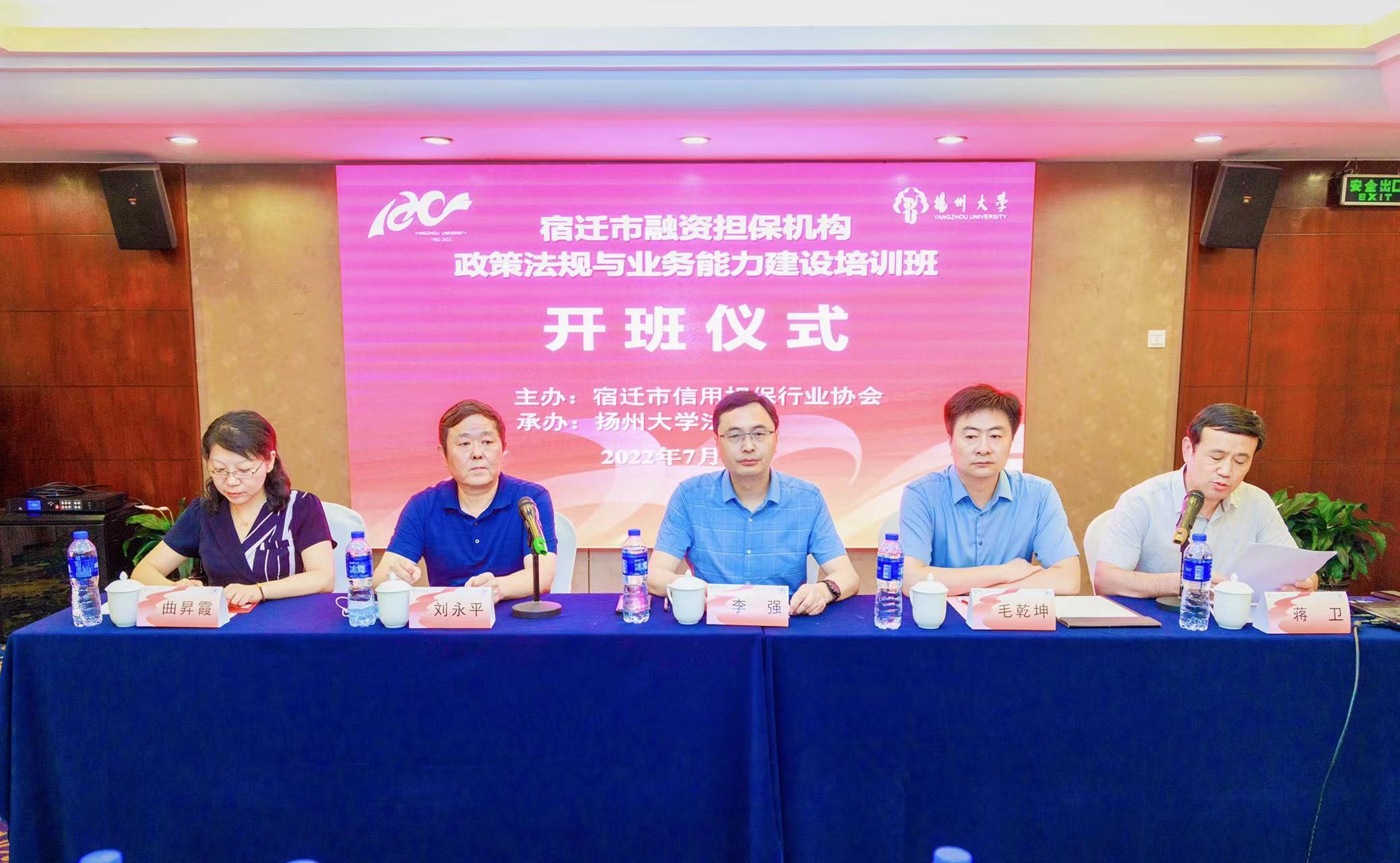 7月19日至22日,宿遷分公司聯合揚州大學法學院開展宿遷市融資擔保機構政策法規與業務能力建設培訓。省地方金融監管局監管二處副處長毛乾坤、宿遷市地方金融監管局副局長李強出席開班儀式并講話,揚州大學法學院黨委書記劉永平致歡迎詞,市擔保行業協會會長、宿遷分公司總經理蔣衛主持并作動員講話。揚州大學法學院副院長曲昇霞等參加開班儀式。
