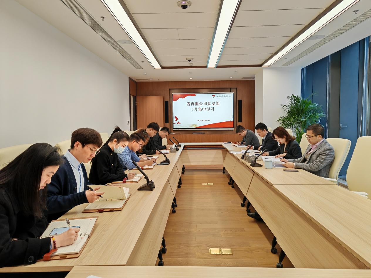 會議中,公司多名黨員分別領學了習近平總書記在參加江蘇代表團審議時的重要講話精神、習近平總書記在看望參加政協會議的民革科技界環境資源界委員時的重要講話精神等。公司黨支部書記指出,今年全國兩會期間,習近平總書記就發展新質生產力、推動高質量發展等發表了一系列重要講話。公司全體員工要把學習宣傳貫徹全國兩會精神作為一項重要政治任務,抓好學習轉化,切實把思想和行動統一到黨中央決策部署上來。要發揮好政府性擔保的政策性屬性,創新服務產品和服務模式,不斷培育壯大新質生產力。