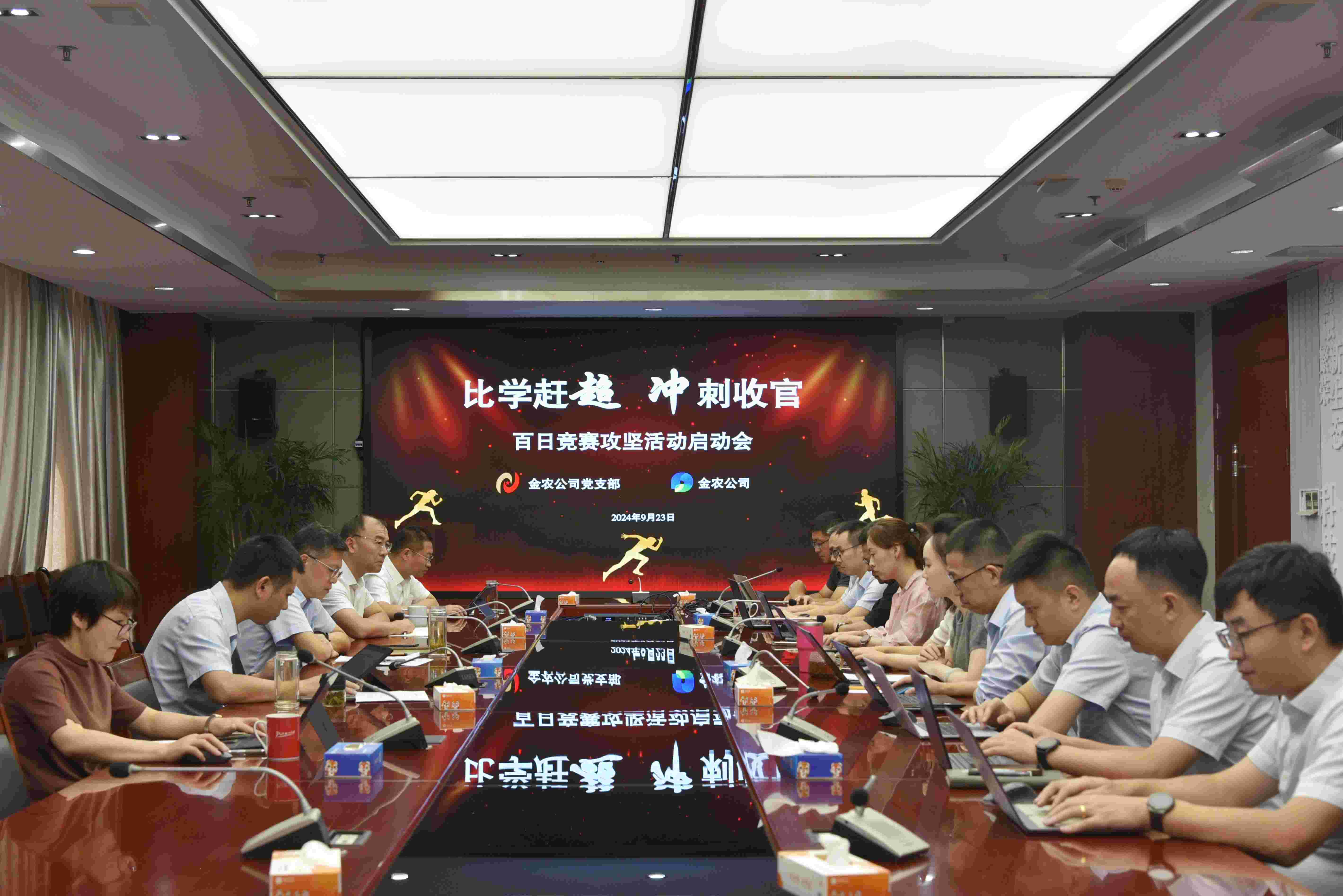 為深入貫徹落實黨的二十屆三中全會精神,以實際行動迎接中華人民共和國成立75周年,切實改進提升公司黨建工作成效,全力攻堅決戰公司年度目標任務,不斷推進黨建工作與業務發展深度融合,持續實施公司改革深化提升行動,金農公司黨支部決定自9月23日起,開展為期100天的“比學趕超、沖刺收官”百日競賽攻堅活動。當天,公司召開活動啟動會。公司領導班子成員及中層管理人員參加會議。