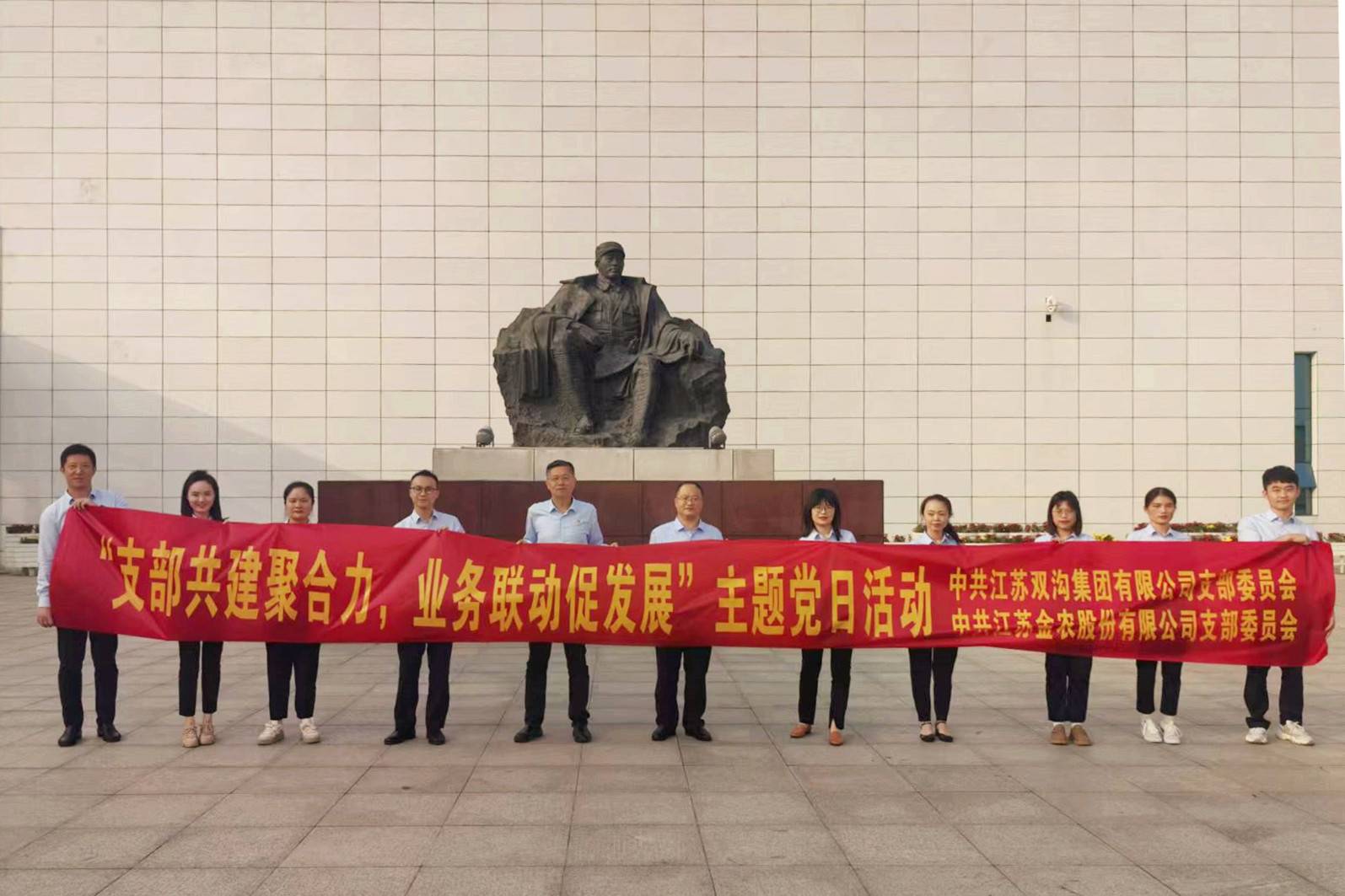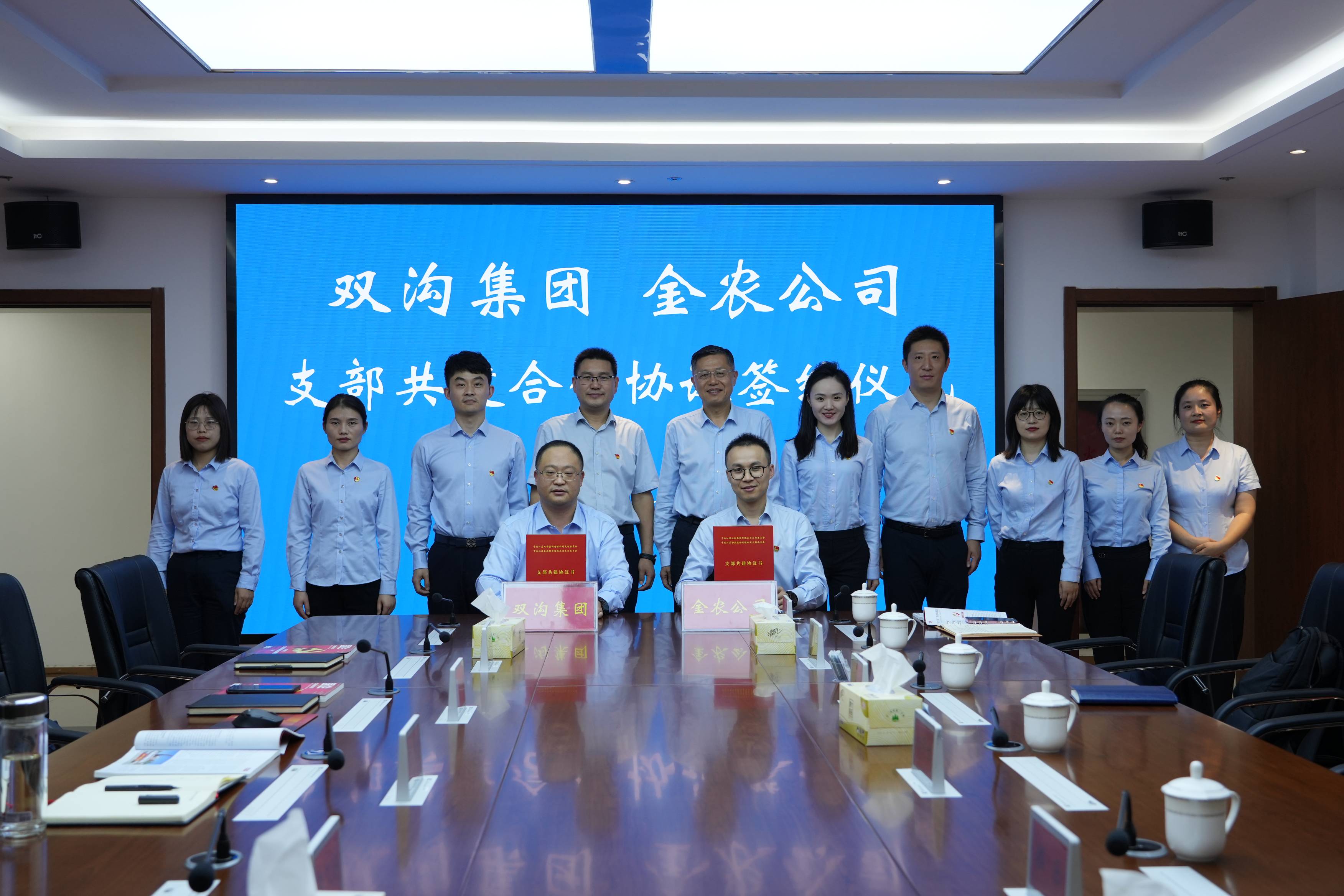 10月15-16日,金農(nóng)公司相關(guān)負(fù)責(zé)人一行前往宿遷產(chǎn)業(yè)發(fā)展集團(tuán)有限公司(以下簡(jiǎn)稱“產(chǎn)發(fā)集團(tuán)”),走訪產(chǎn)發(fā)集團(tuán)旗下江蘇雙溝集團(tuán)有限公司(以下簡(jiǎn)稱“雙溝集團(tuán)”)、小額貸款公司、融資擔(dān)保公司、金融資產(chǎn)公司等,總結(jié)雙方前期簽署戰(zhàn)略合作協(xié)議的落實(shí)、執(zhí)行情況,進(jìn)一步推動(dòng)、深化雙方的全面合作,與雙溝集團(tuán)簽訂黨支部共建合作協(xié)議,聯(lián)合開展主題黨日活動(dòng),以實(shí)際行動(dòng)慶祝中華人民共和國成立75周年,助推黨建工作與業(yè)務(wù)發(fā)展深度融合、深入轉(zhuǎn)化。產(chǎn)發(fā)集團(tuán)黨委副書記、總經(jīng)理陳武熱情接待金農(nóng)公司一行,并見證簽約儀式。