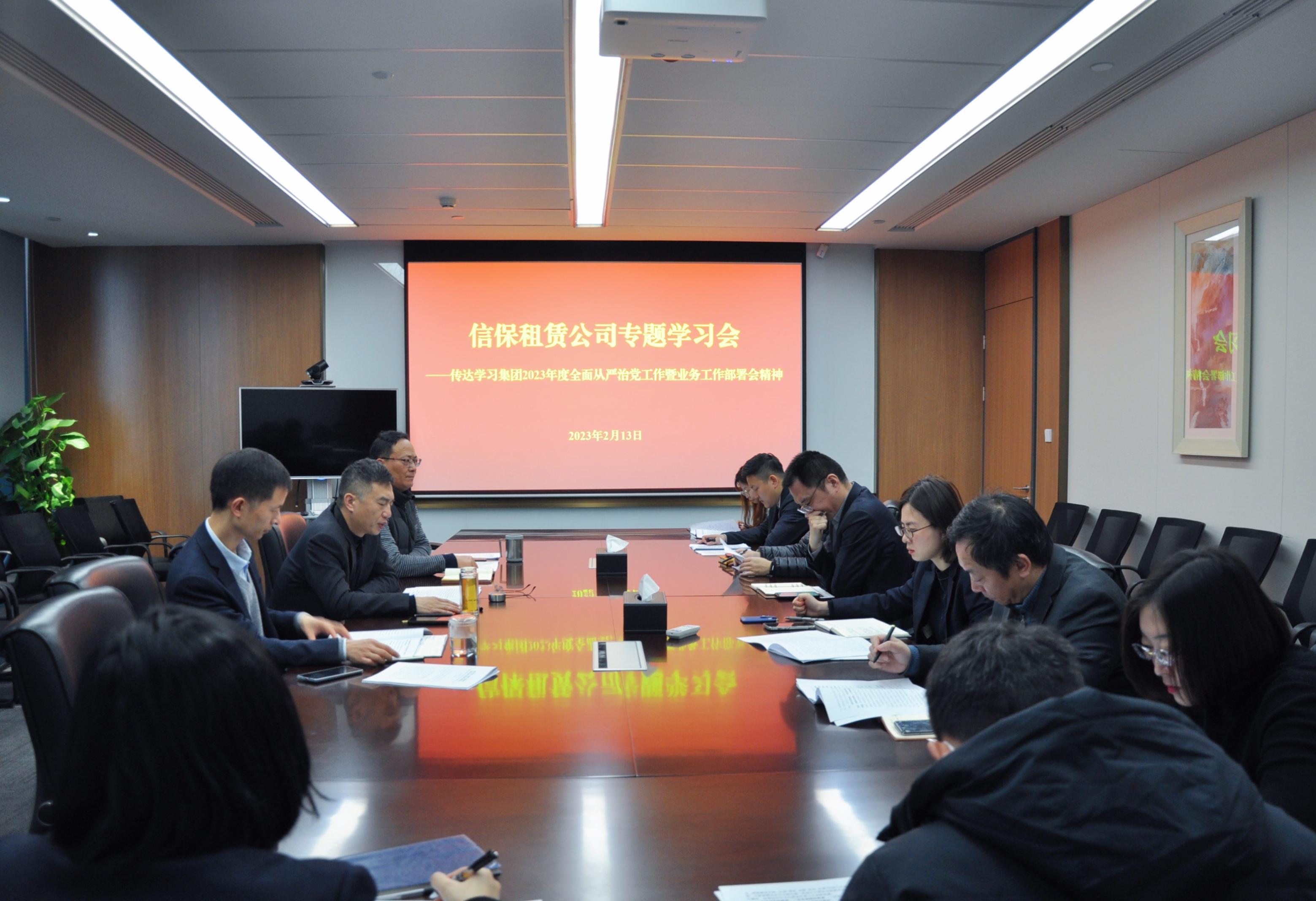 2月13日,江蘇信保租賃公司召開專題會議,傳達貫徹落實集團2023年度全面從嚴治黨工作暨業務工作部署會議精神,并結合公司實際,研究部署2023年度重點工作。會議由公司董事長、總經理主持,公司班子成員和中層管理人員參加會議。