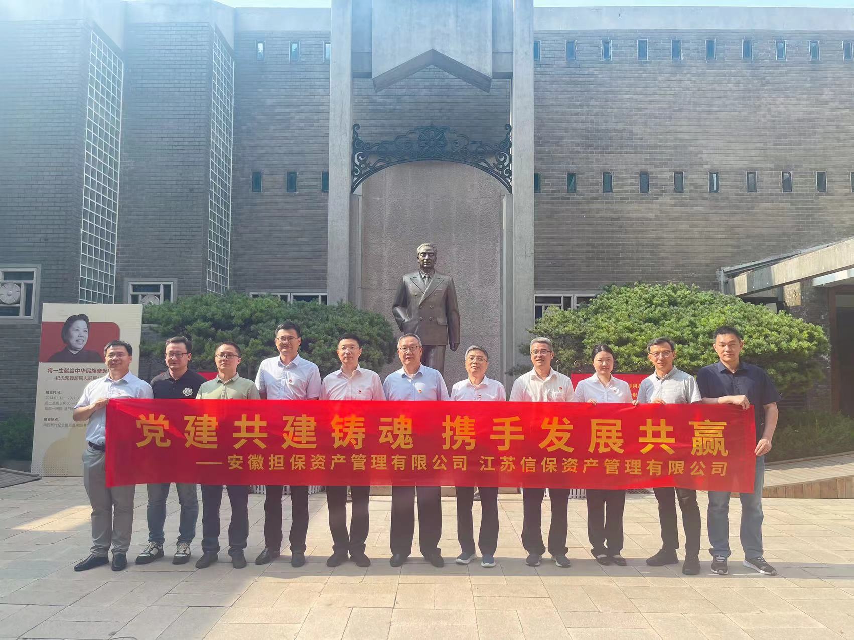 6月14日下午,安徽省信用融資擔保集團有限公司合規總監朱曉平率安徽擔保資產管理公司有關人員到江蘇信保資產管理公司調研。調研期間,江蘇信保資產管理公司與安徽擔保資產管理公司簽署了戰略合作并赴梅園新村紀念館開展黨建共建活動。江蘇信保集團副總裁姜斌,集團資金業務部、融資租賃公司及資產管理公司有關人員參加活動。